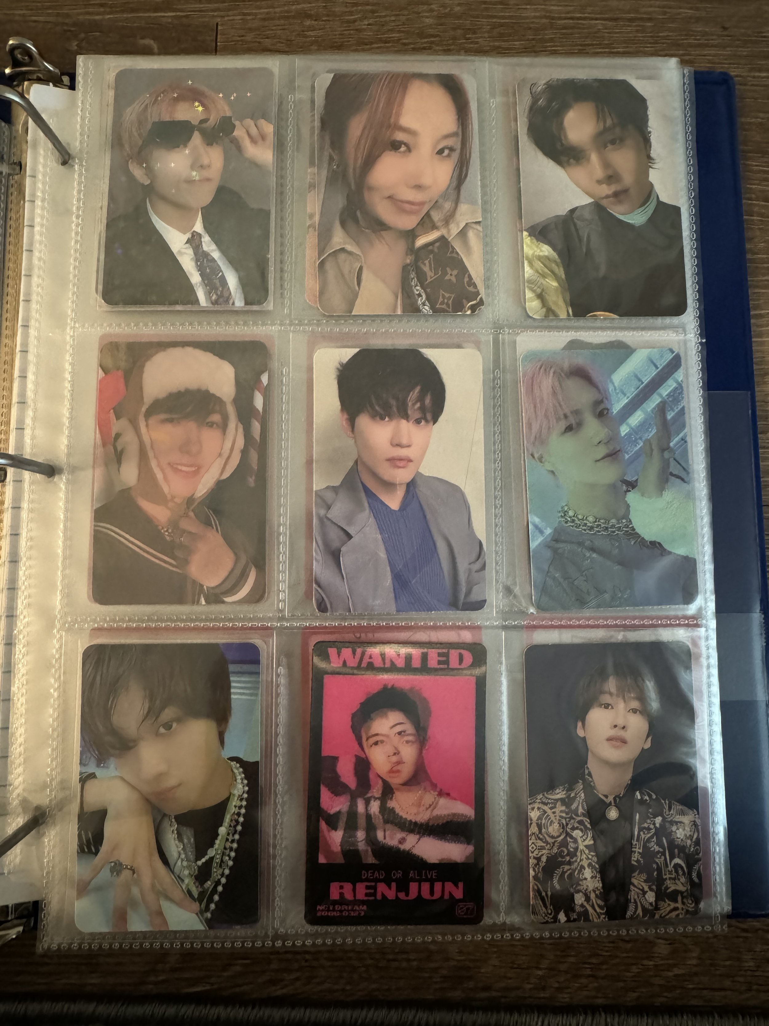 With my collection of K-pop cards, I first acquire the cards through purchasing albums and buying them from sellers online. After I receive these cards, I place them in a binder and label them with the name of the person photographed, album, date I bought the card, and where I bought the card. After I have written down all this information, I preserve the cards in sleeves to protect the cards. I then place the cards in binder pocket protectors. These pocket protectors fit nine cards per sheet. After all this collecting and processing is done, I start the curation process.